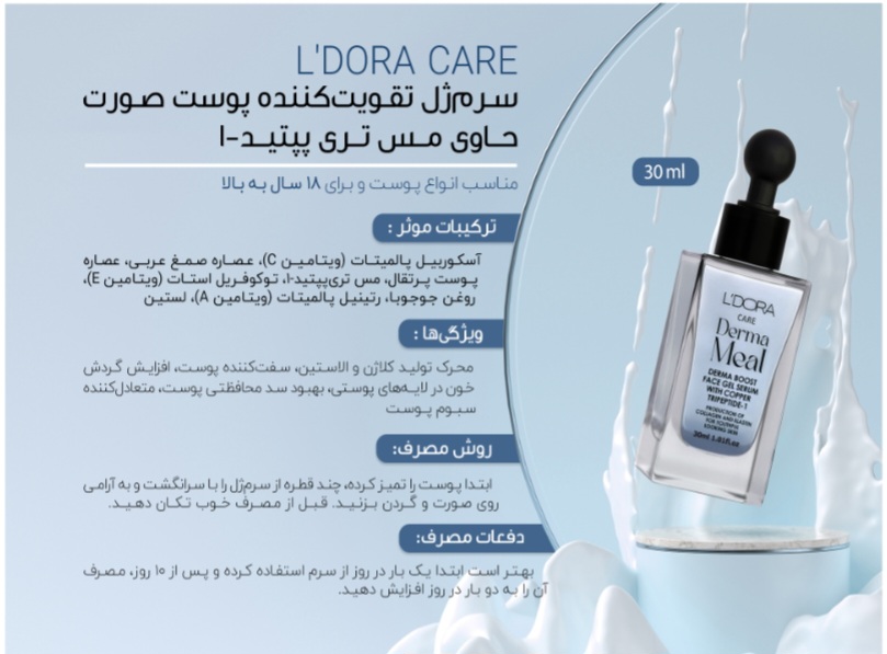 دستهبندی: درمامیلبرچسبها : درمامیللدوراسرم ژلمناسب برای: 18 سال به بالامحرک تولید: کلاژن و الاستینسفتکننده پوست: افزایش گردش خون در لایههای پوستیبهبود سد محافظتی پوست: متعادلکننده ،،سبوم پوستترکیبات موثر : آسکوربیل پالمیتات (ویتامین C)، عصاره صمغ عربی، عصاره پوست پرتقال، مس تریپپتید-1، توکوفریل استات (ویتامین E)، روغن جوجوبا، رتینیل پالمیتات (ویتامین A)، لستین ویژگیها : محرک تولید کلاژن ونمایش بیشتر