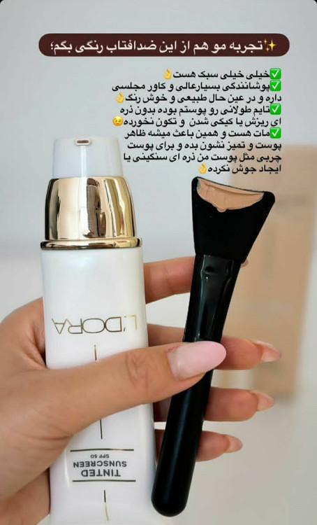 کرم ضد آفتاب لدورا. محافظت کننده قوی پوست در برابر پرتوهای مضر آفتاب است. ترکیبات منحصر به فرد و مؤثر به کار رفته در این محصول از پوست در برابر پرتوهای مخرب UVA و UVB به طور همزمان محافظت می کند.این محصول از آسیب های سلولی ناشی از رادیکال آزاد و پیری پوست جلوگیری کرده و مانع از آفتاب سوختگی و التهابات پوست می شود. این ضد آفتاب به دلیل رنگی بودن. پوشش مناسبی برای پوست ایجاد می کند و جلوه زیباتری به آن می دهد. همچنین فاقد چربی است و به همین دلیل روی سطح پوست حالت چرب و روغنی ایجاد نمی کند.