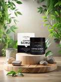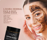 ترکیبات موثر: پودر قهوه، شکر سفید، کلاژن گیاهی، روغن بادام شیرین، روغن زیتون، روغن هسته انگور، شیباتر