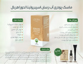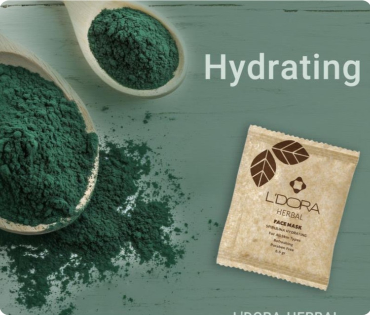 ترکیبات موثر: پودر جلبک اسپرولینا، آرد جو دوسر، پودر گل ختمی، آرد برنج، بابونه، پودر بلوط هندی، چای سبز